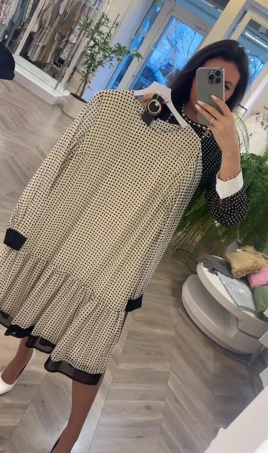【50%OFF】【S-3XL】Rochie elegantă din bumbac de înaltă calitate, cu model în buline